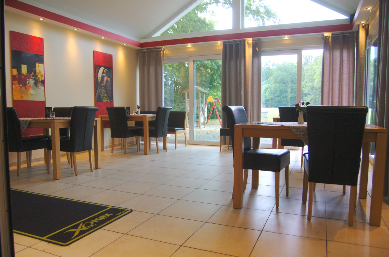 Der angrenzende Spielplatz bietet den jüngsten Besuchern Unterhaltung, während der Biergarten und Wintergarten den Erwachsenen einen entspannten Rückzugsort bieten, von dem aus sie das Geschehen im Auge behalten können.